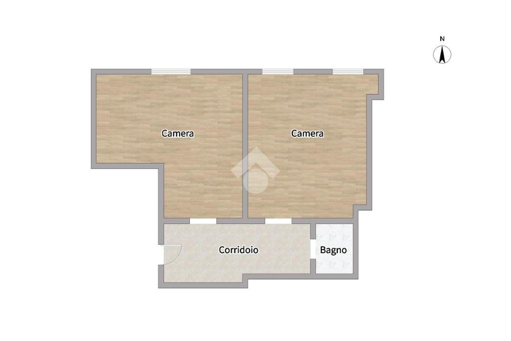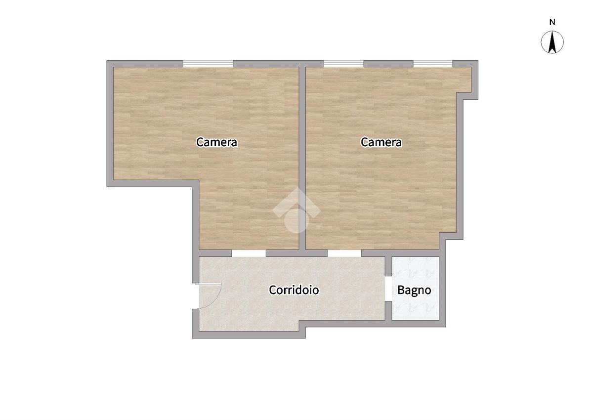 La soluzione è composta da: ingresso in disimpegno, camera da letto con finestra, seconda camera con finestra e servizio.