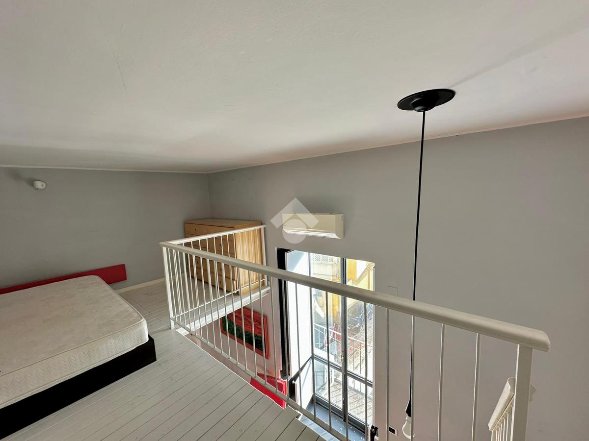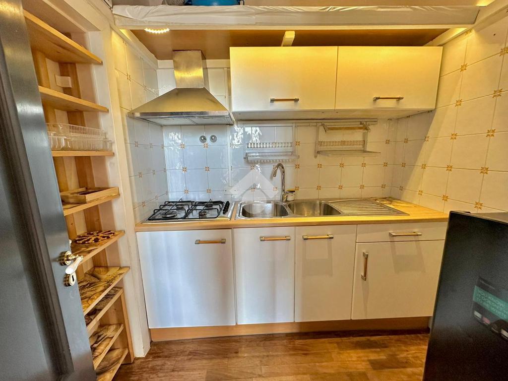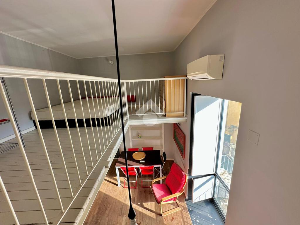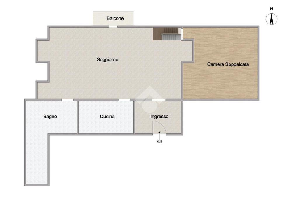 L’immobile è così composto: ingresso in salone con balcone, cucina, servizio e vano soppalcato adibito a camera da letto.