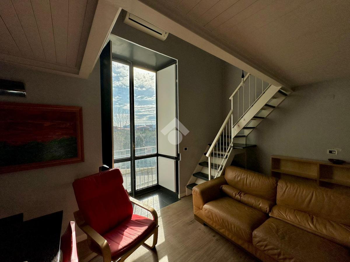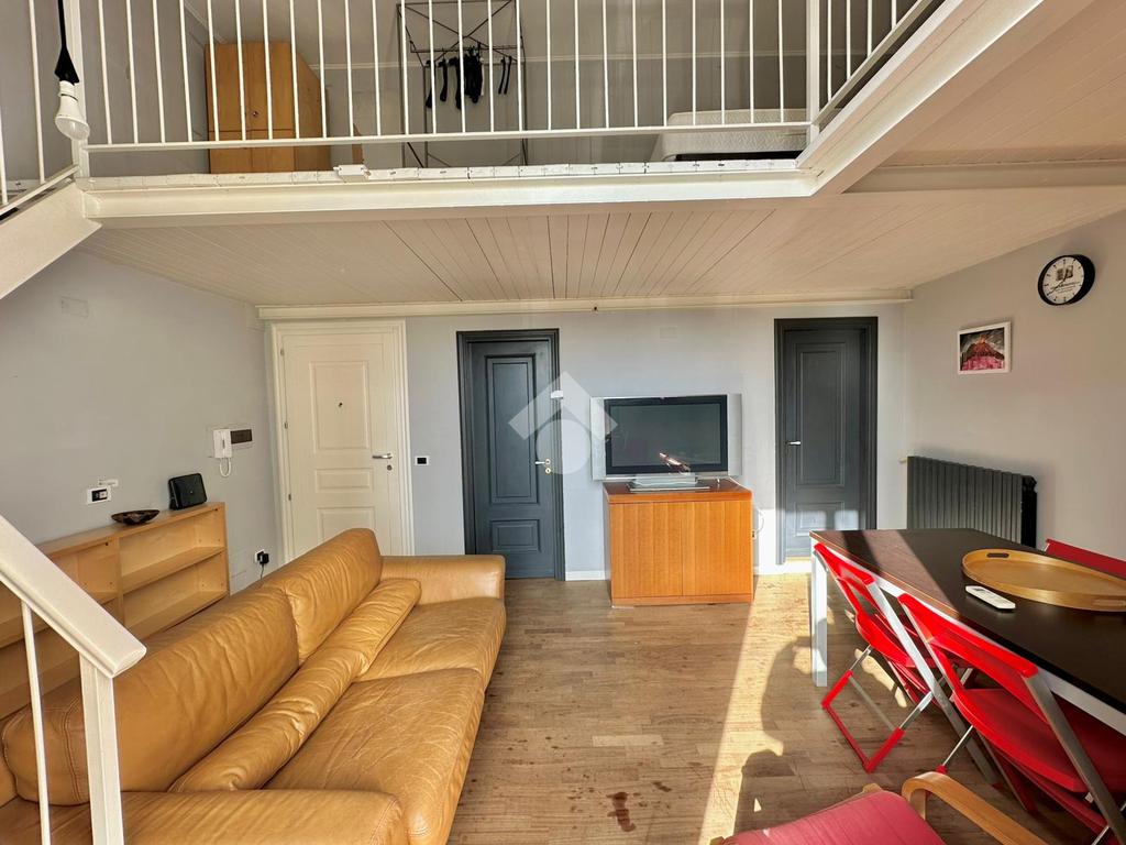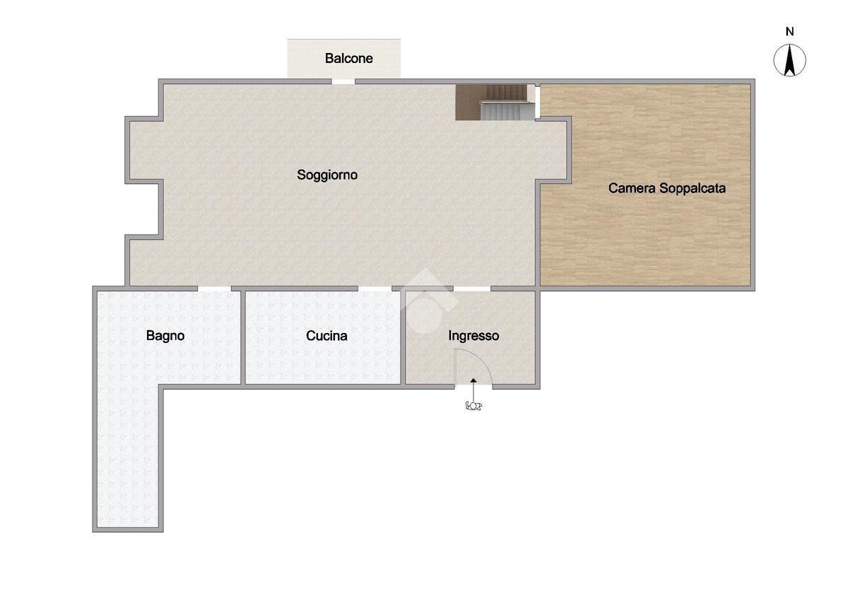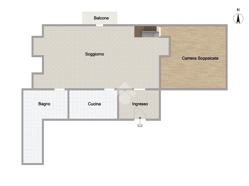 L’immobile è così composto: ingresso in salone con balcone, cucina, servizio e vano soppalcato adibito a camera da letto.