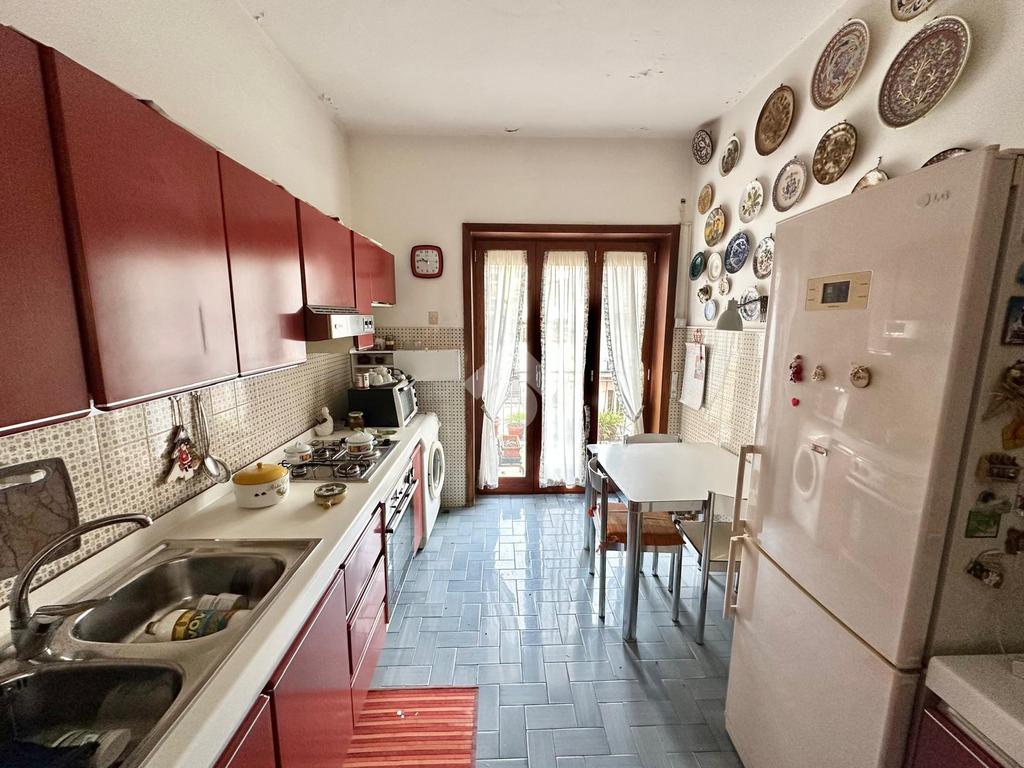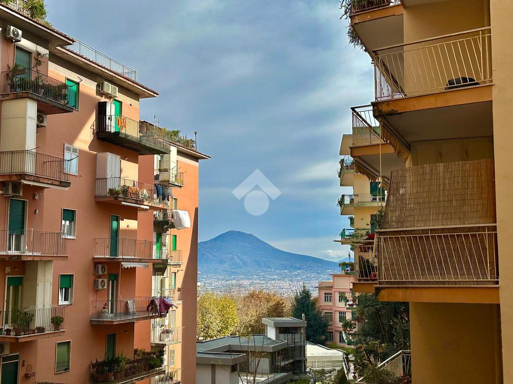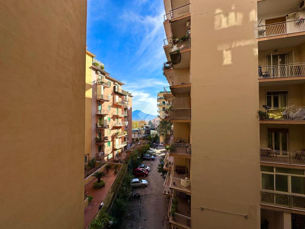 La soluzione, servita da ascensore, si presenta abitabile ed è composta da: ingresso in ampio disimpegno, salone doppio con due punti luce e accesso al balcone, cucina con accesso a un secondo balcone, bagno, ripostiglio e tre camere da letto, tutte luminose grazie ai propri punti luce. La doppia esposizione garantisce un’ottima luminosità e una vista libera, con una piacevole visuale parziale sul Vesuvio, rendendo l’ambiente arioso e confortevole.