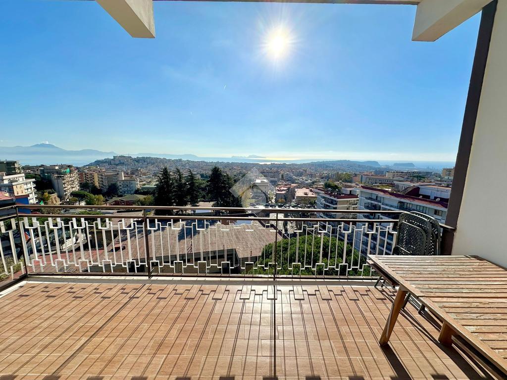 In Via Pietro Castellino (parte alta), a soli 400 metri dalla Metro Rione Alto, proponiamo in vendita un prestigioso appartamento panoramico ai piani alti, con vista mozzafiato sulla città e sul golfo.