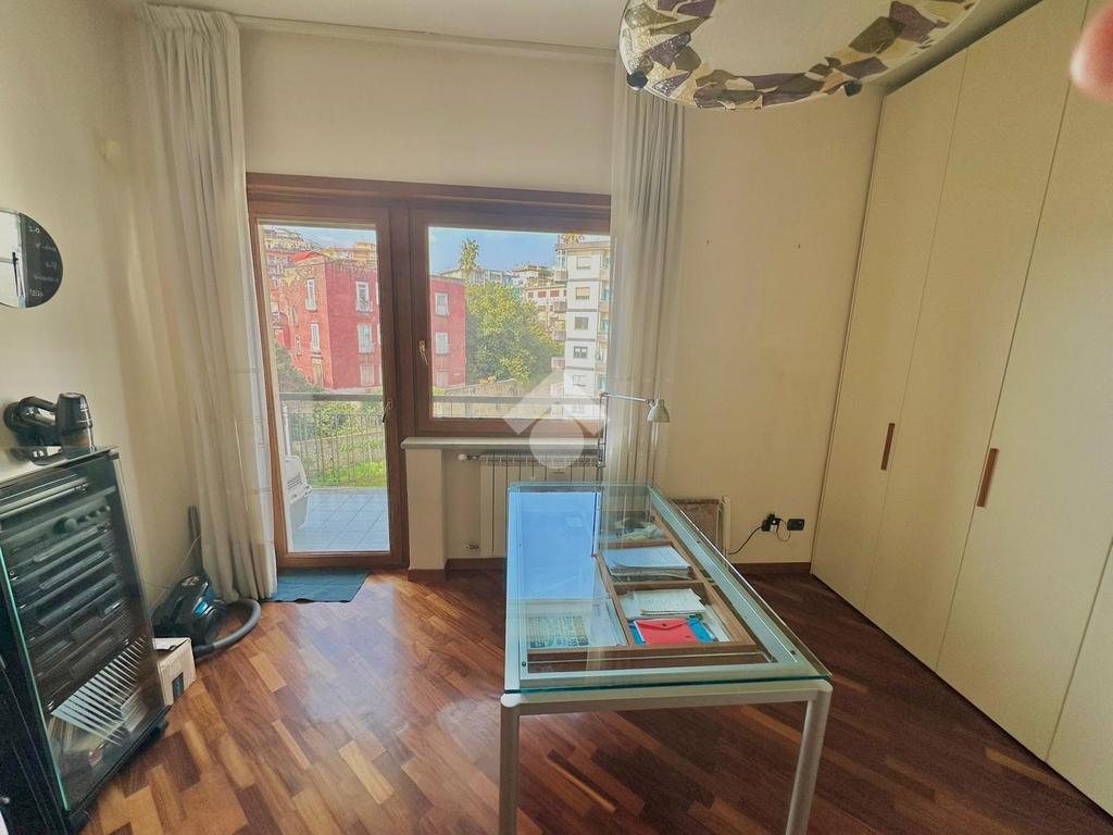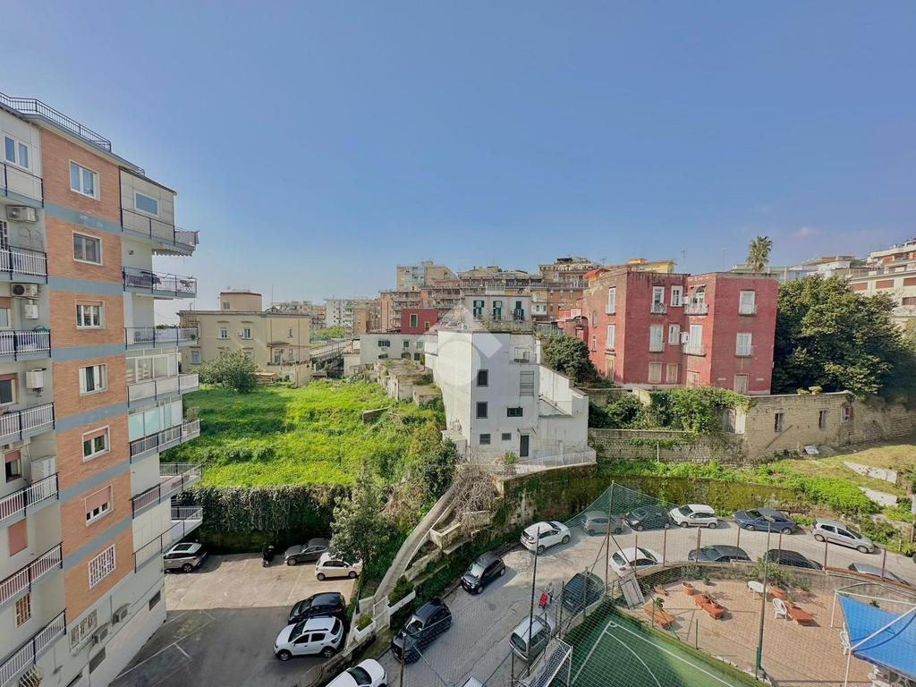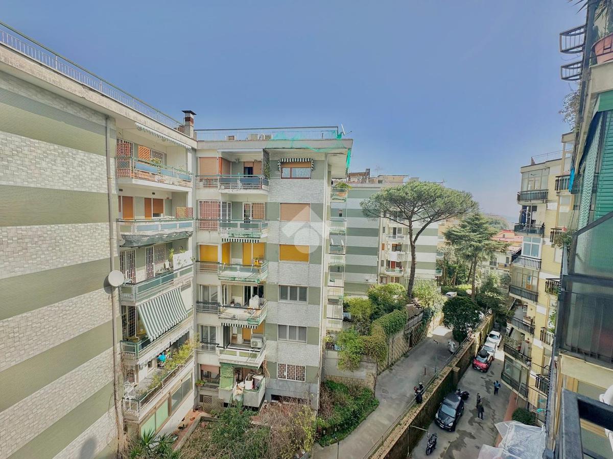 In una traversa della parte alta di via Domenico Fontana, precisamente in via Pietro Castellino 141/S, a soli 500 metri dalla fermata della metropolitana collinare Linea 1 – Rione Alto, proponiamo in vendita un elegante appartamento di circa 135 mq, situato al sesto piano di uno stabile in cemento armato dotato di ascensore, all'interno di un tranquillo parco con servizio di portineria.