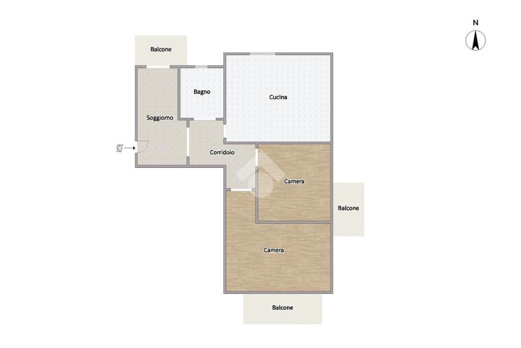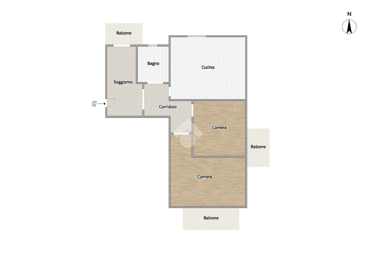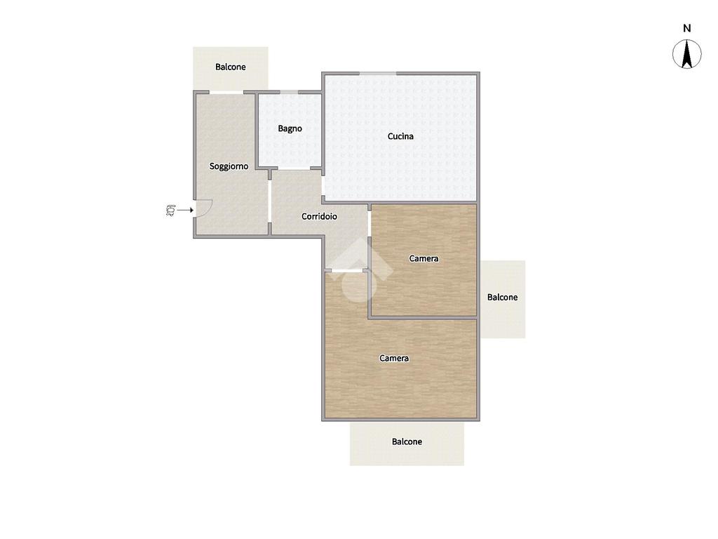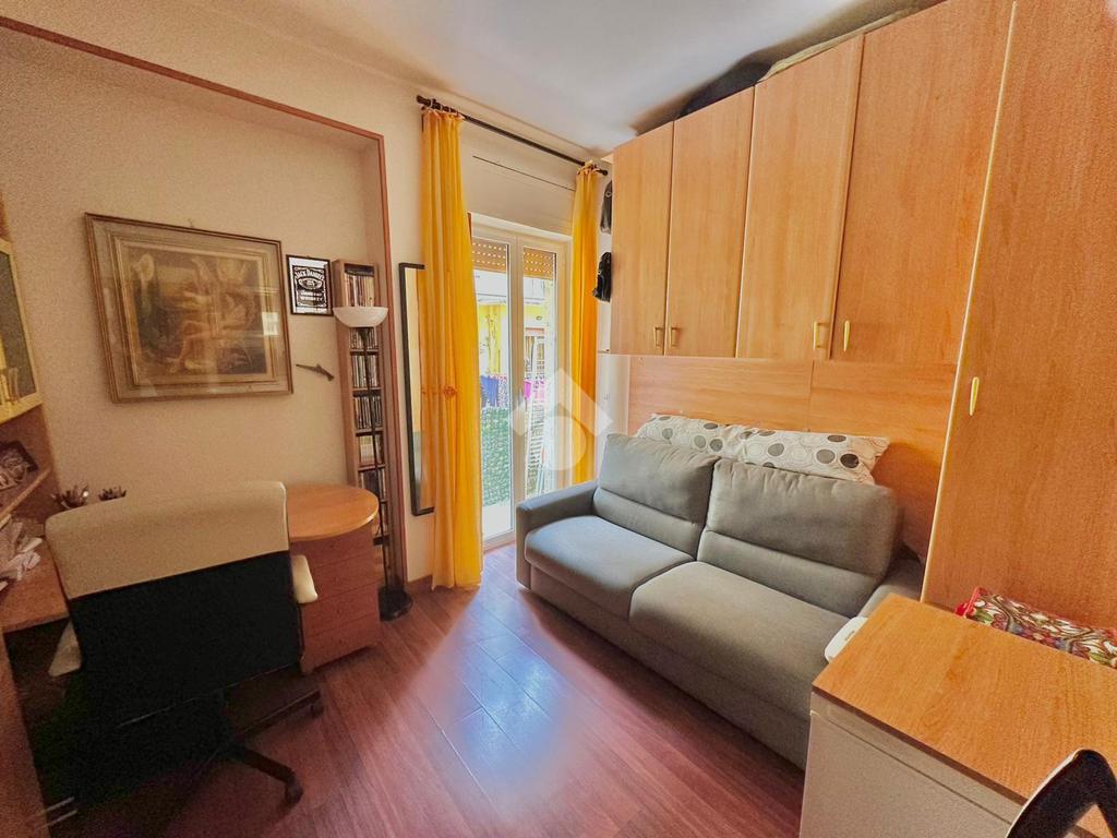 L’immobile, in buone condizioni, è così composto: ingresso in saloncino con accesso al balcone, cucina abitabile con finestra, bagno e due camere da letto, entrambe con accesso al balcone.